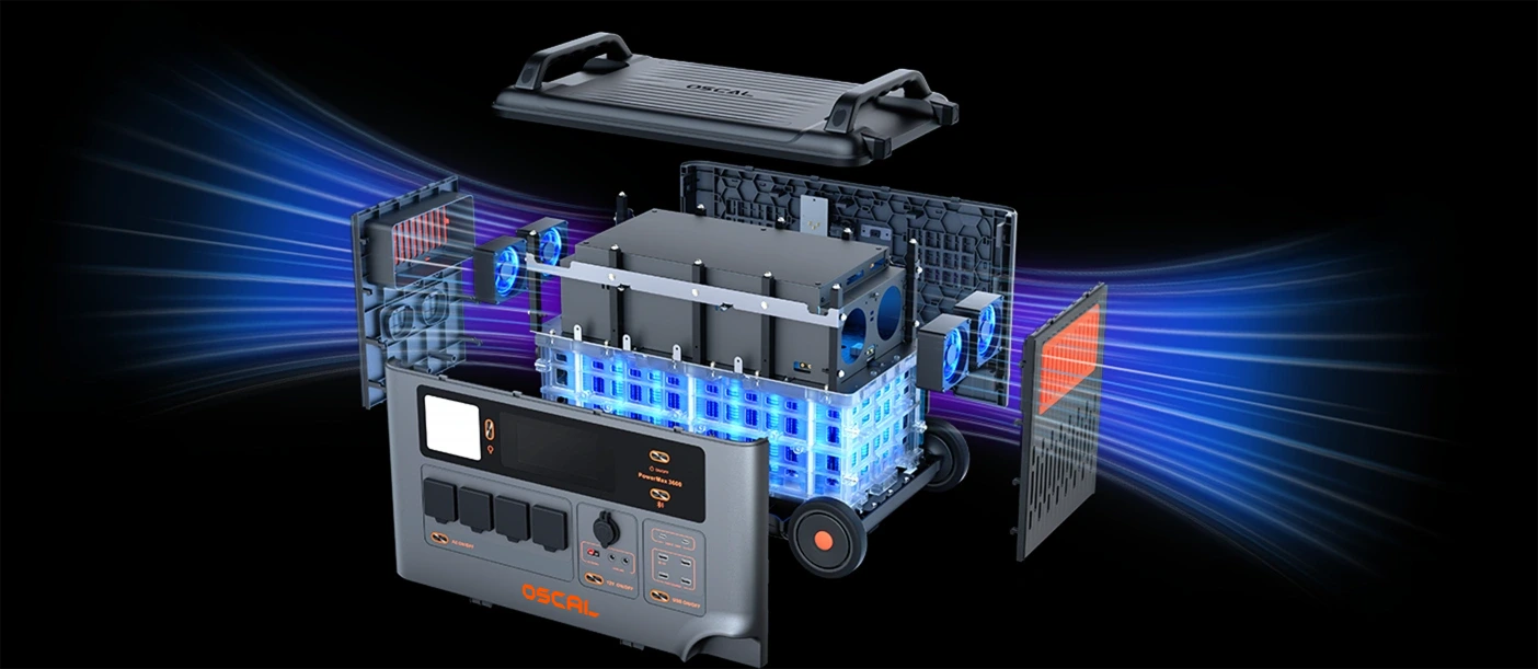 Catering to your various energy needs from outdoor to indoor activities, Oscal PowerMax 3600 offers the flexibility to tailor your battery capacity with a 100% modular design, ranging from 3.6 kWh to 57.6 kWh with up to 15 Battery packs ( 3600 Wh/per pack).