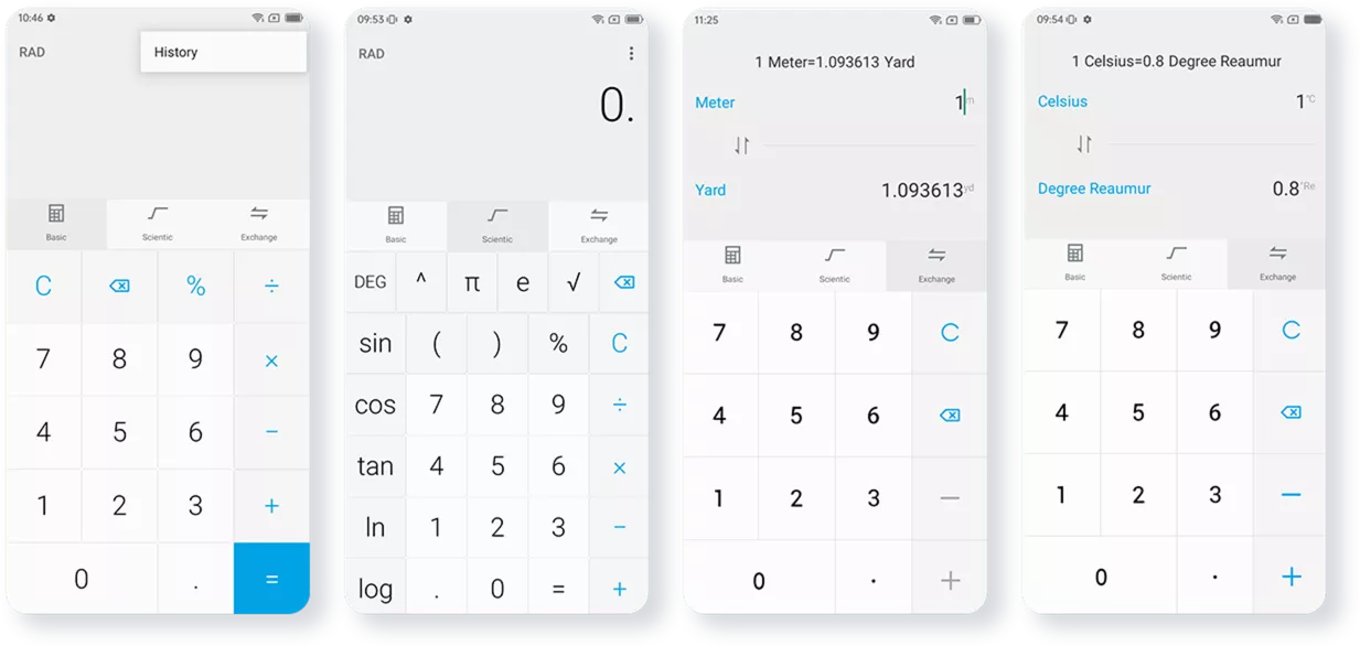 The tools in Calculator are more than enough to deal with all the basic math problems that you face in daily life. Beside, Calculator allows you to view your calculation history and do different metric conversions instantly, rendering paperless calculation possible in real sense. The interface of Calculator has gone through customized changes with round-cornered card design and more beautiful blue hues.