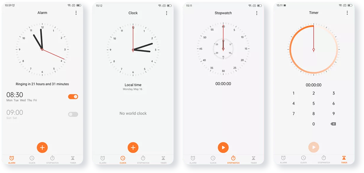Doke OS 2.1 successfully brings everything to do with time together by offering alarm, clock, stopwatch and timer in the Clock. Each of them features the same dials as those of real clocks respectively, providing more accurate and effortless reading.