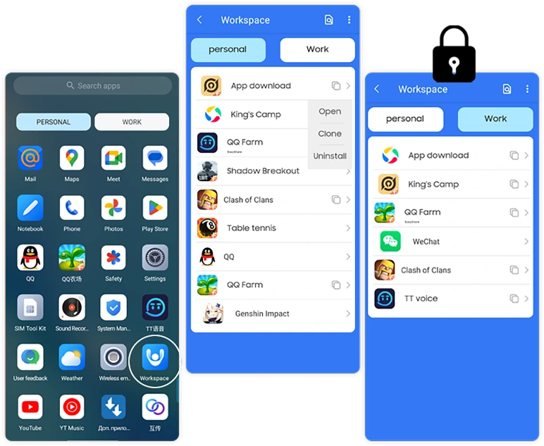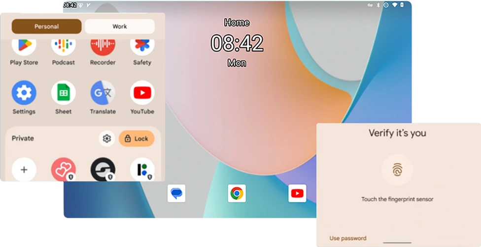 Seamlessly switch between personal and professional modes with the Workspace App. Keep your work and personal life perfectly organized while safeguarding sensitive data. Experience productivity tailored to your rhythm.
