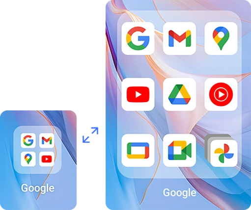 Streamline your app experience with larger folders. Quickly access your favorite apps while enjoying a clean and organized interface for faster navigation.