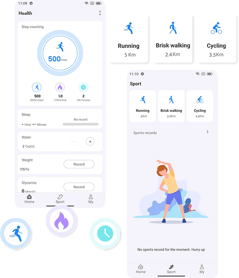 Stay on top of your fitness journey with a health app designed to monitor your steps, calories burned, and time spent cycling, walking, or running. Ideal for anyone striving to stay active and achieve their fitness milestones.