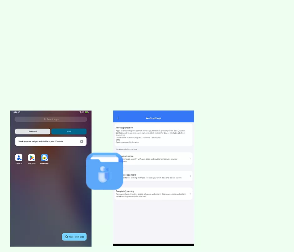 Workspace AppCreate a private zone for your work life. Log in with two different accounts in one app, keeping your business data secure from personal apps. Privacy in Life: Keep work and personal life apart. Privacy in Data: Set up lock for workspace apps.