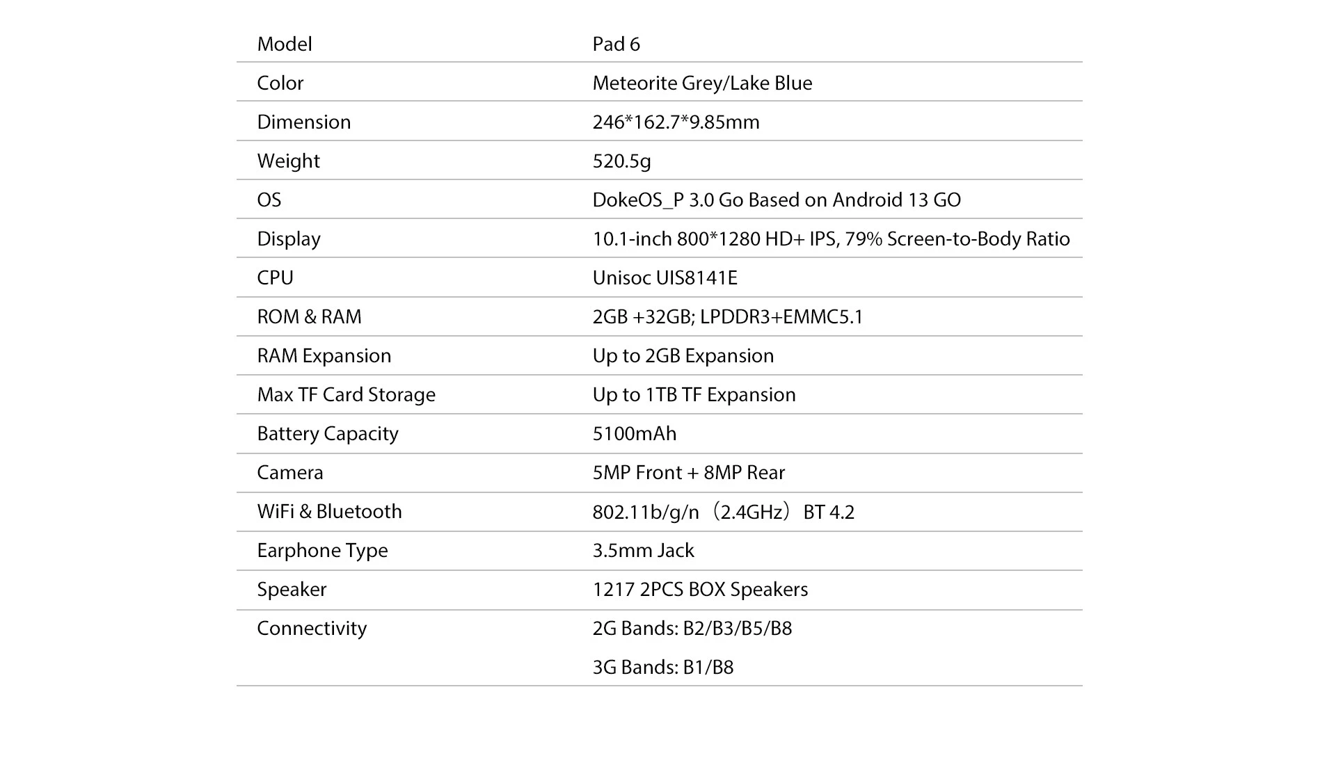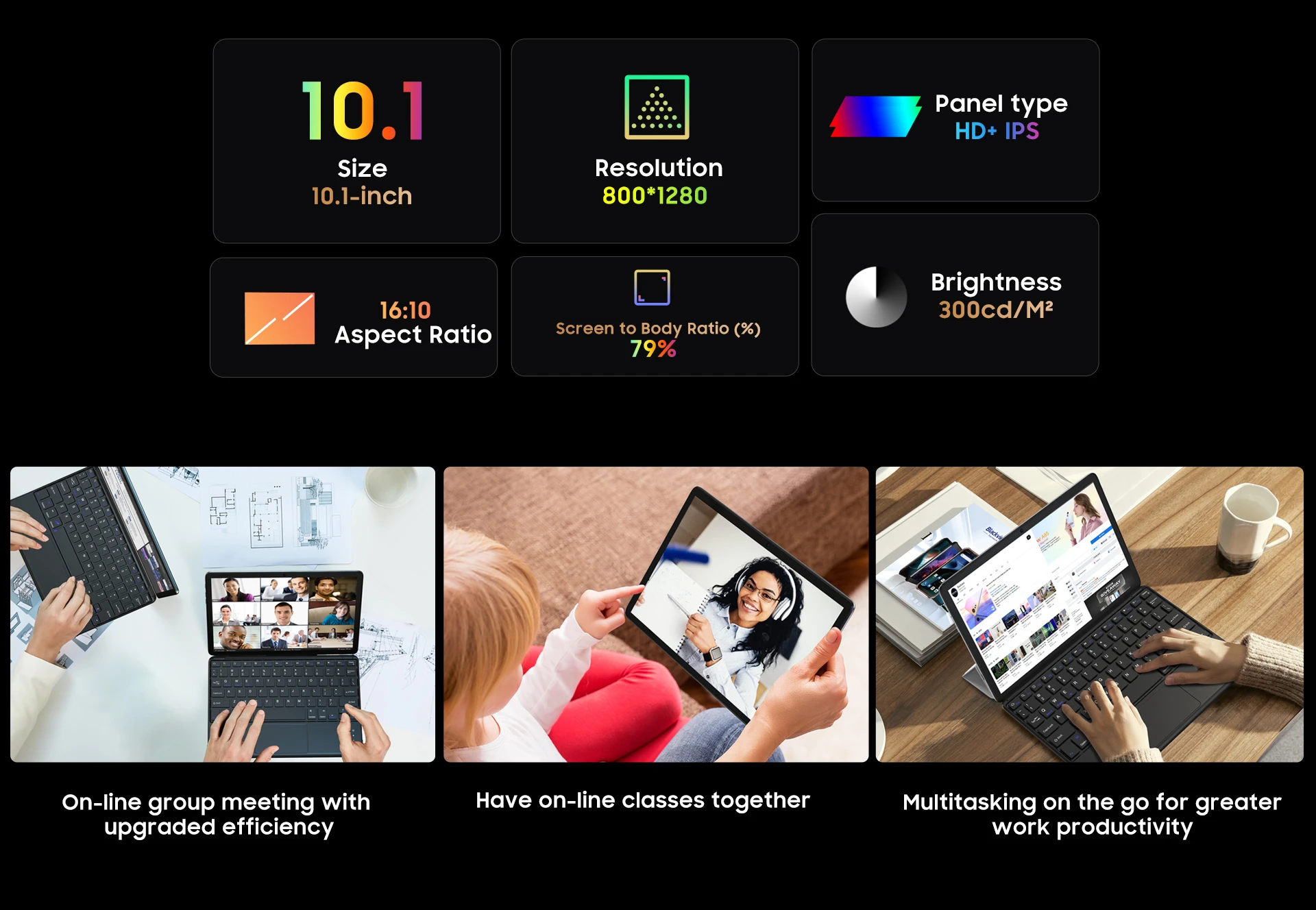 10.1-inch800*1280HD+IPS79%Screen-to-Body Ratio |