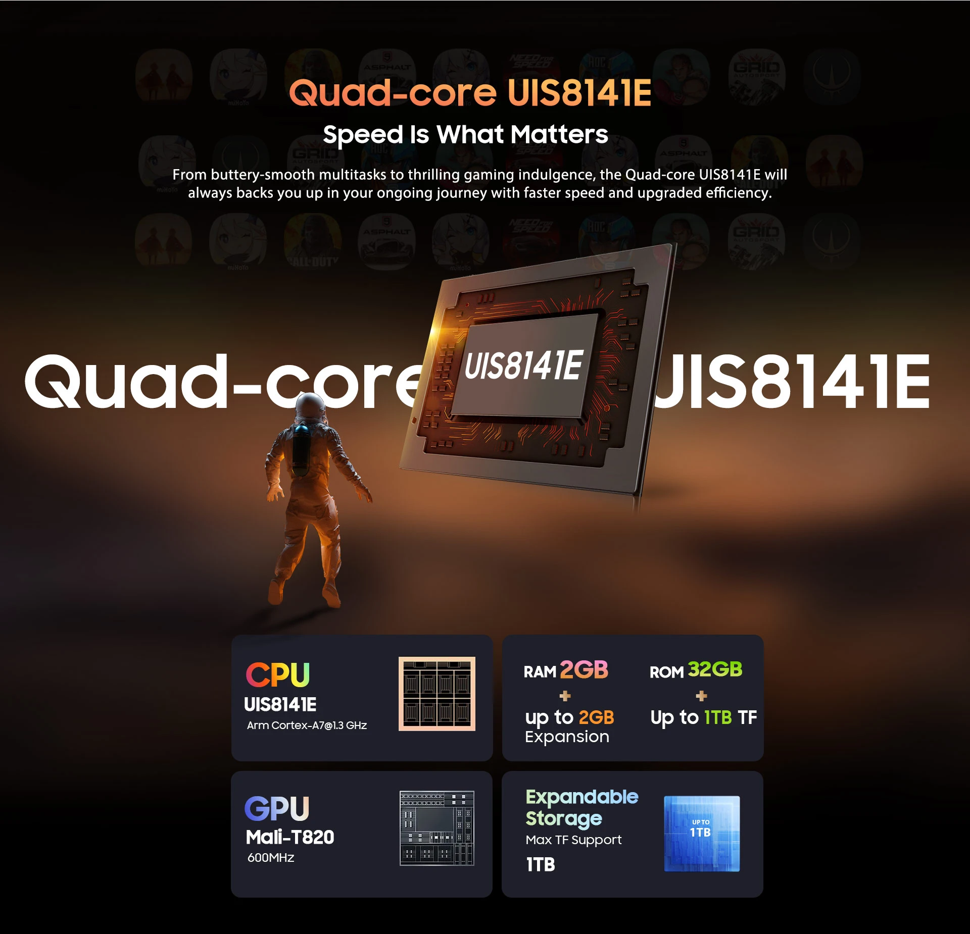 Up to 1TB TF Expansion |