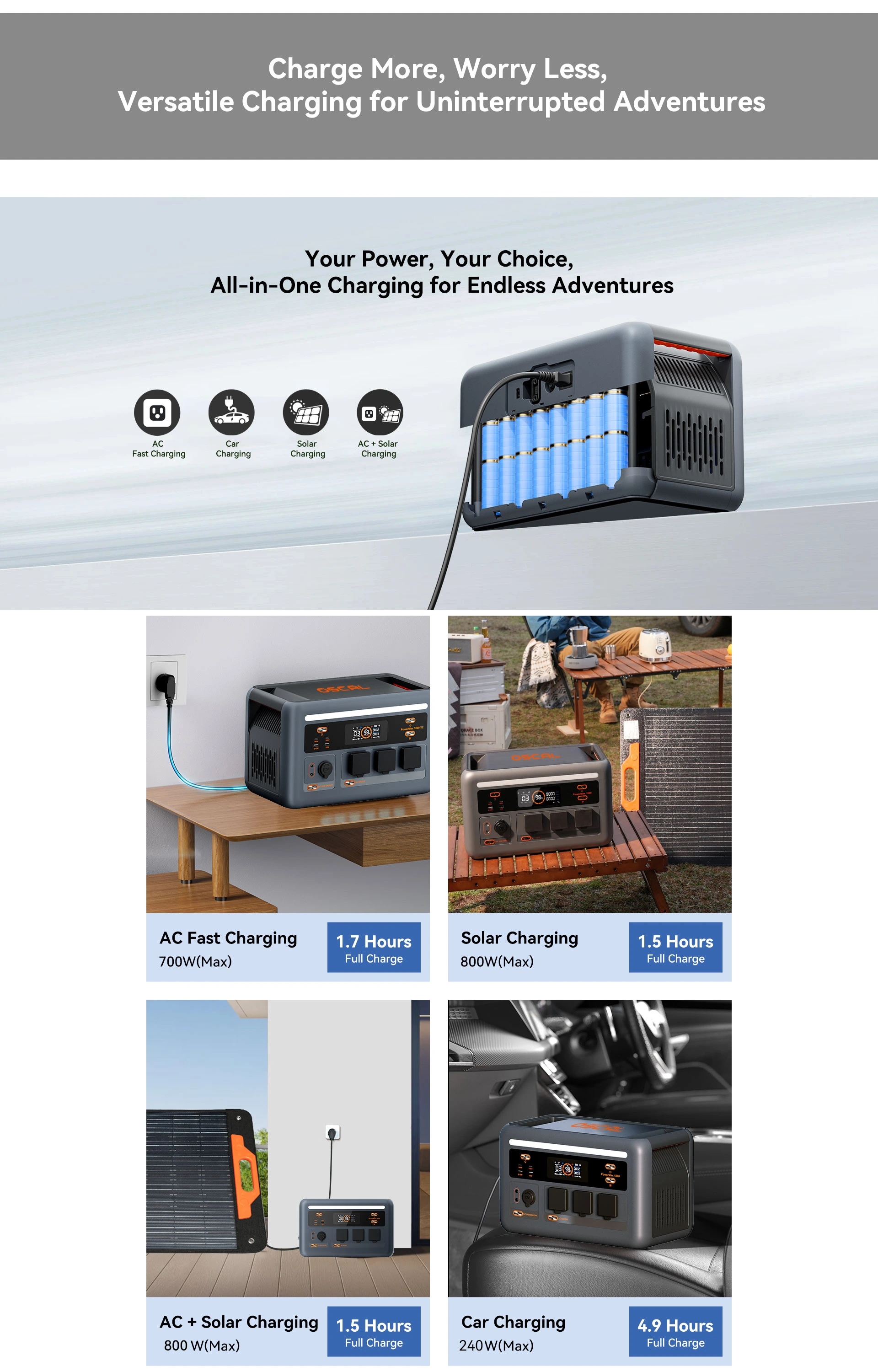 | Solar Charging | 1.6 Hours (Full Charge)800W(Max) | |