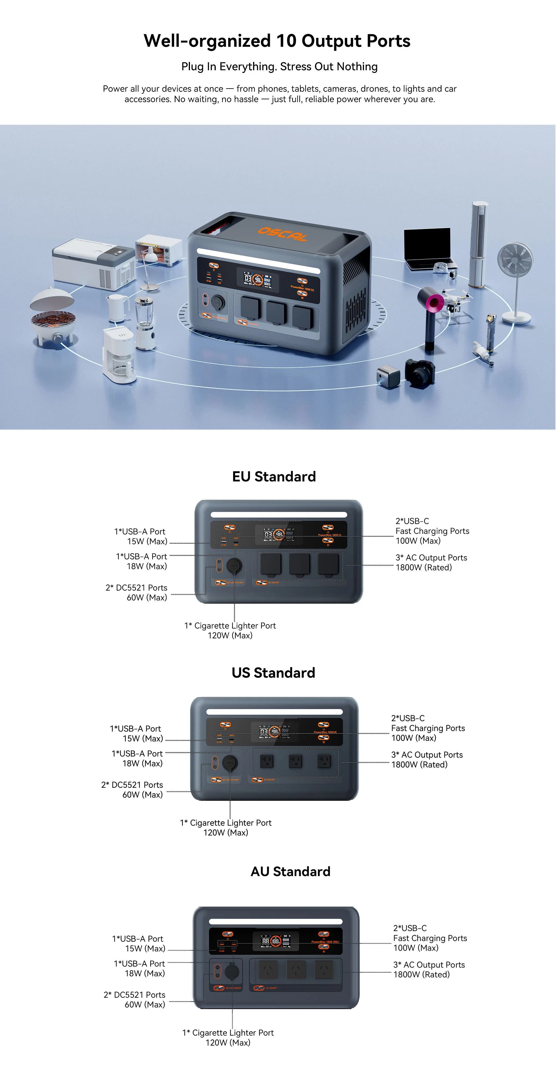 | AC Outlets | 3* 1800W Max | |