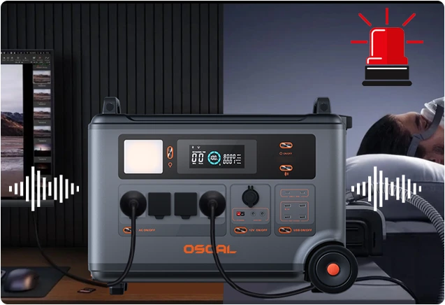 When the home power source fails, the Blackview OSCAL PowerMax 6000 will swiftly switch to work as the backup battery in only 5-8ms , so you hardly notice the slight flickering of the lights, delivering constant power to protect your computer from data loss and maintaining the uninterrupted operation of your fish tank, refrigerator, CPAP, and other essentials.