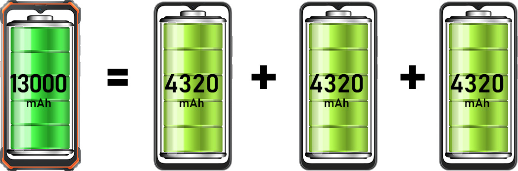 One 13000mAh Battery = 3 x mobiles of regular battery capacity