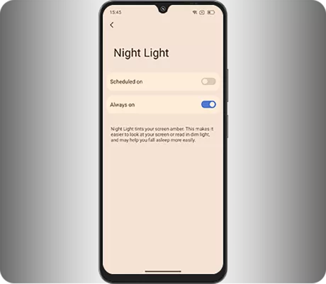 Night LightCuts blue light to help you relax, unplug, and snooze better after late-night screen time. -